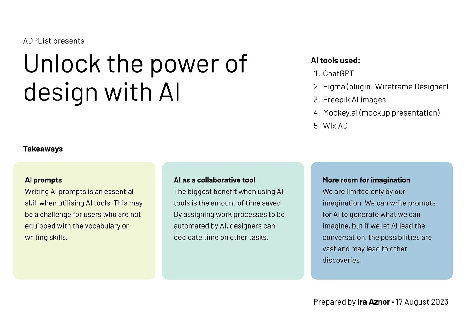 Last few weeks, I had spent my evenings with the amazing ADPList community in a masterclass on designing using AI tools. In the final session, participants submitted a design challenge with the following brief: