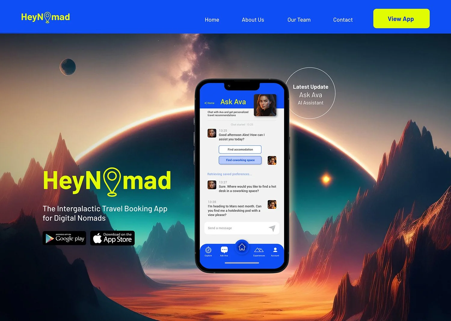 As you would have guessed, I decided to let the imagination run wild, just for fun. Go wild or go home, right? The HeyNomad app is now rebranded into an intergalactic travel booking app for digital nomads 🤣.