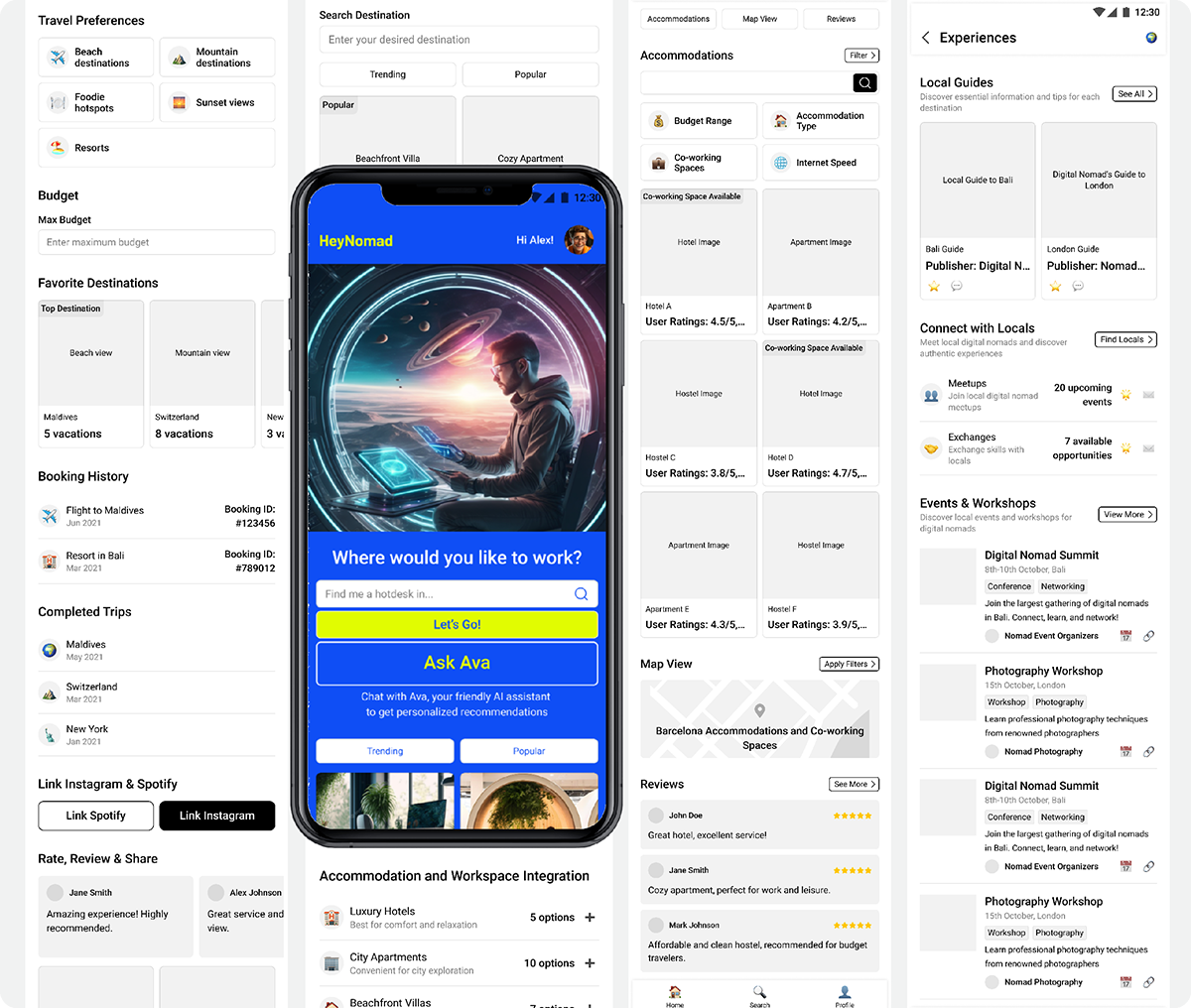 As I had previously worked on a travel booking website for digital nomads called HeyNomad, I wanted to design an app version of this website with improved chat functions using AI tools.